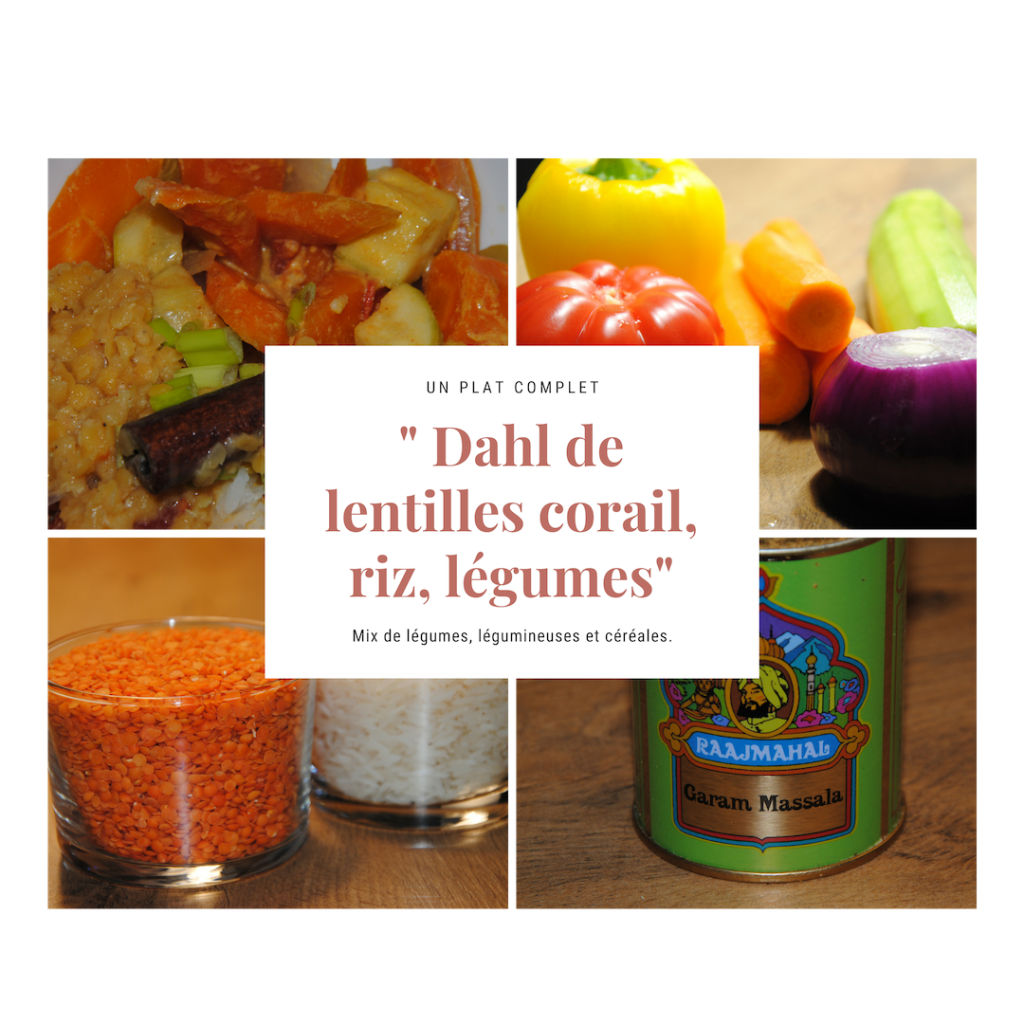 Il y a 3 préparations distinctes : le riz nature basmati, le dahl de lentilles corail, les légumes au lait de coco.