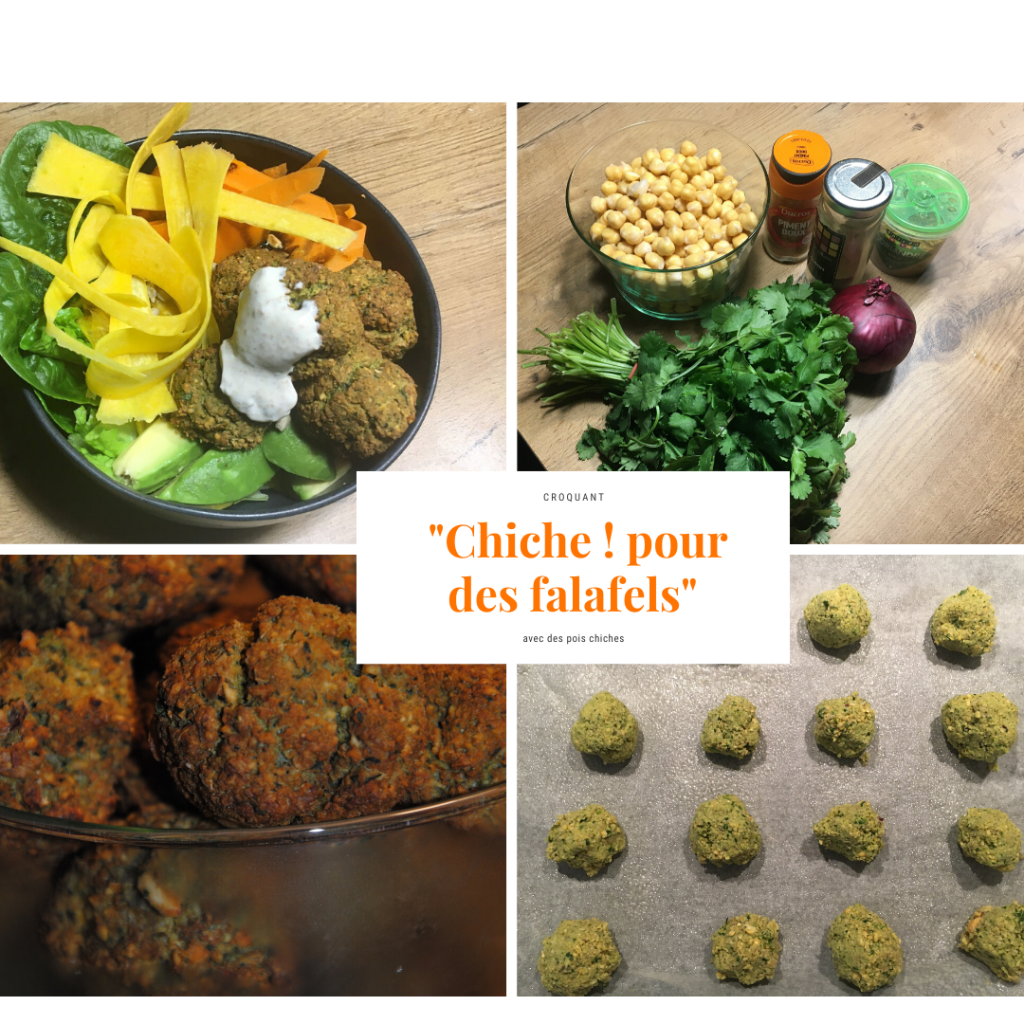 Le lendemain j’ai mixé 400gr de pois chiches bien essorés (crus), 1 oignon rouge, 1 CS d’huile d’olive, 1/2 bouquet de coriandre, du cumin, du Piment doux, du sel et 1 CS de farine de pois chiche (ou de farine de blé),