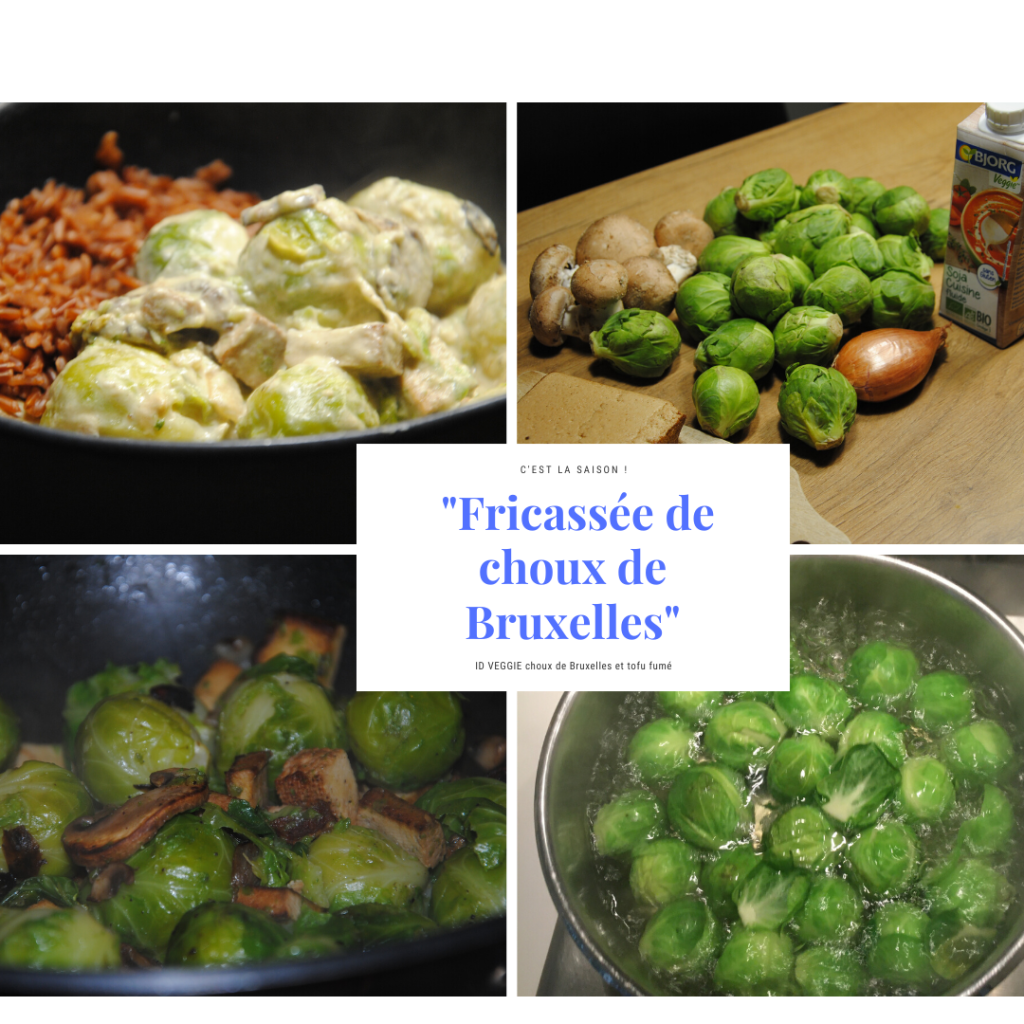 Un plat complet, dont la préparation principale est composée de 500 gr choux de bruxelles, 2 poignées de champignons de Paris, 1 échalotte et de la crème de soja ainsi qu’un bloc de tofu fumé, voici les ingrédients de cette poêlée très goûteuse pour 2 personnes.