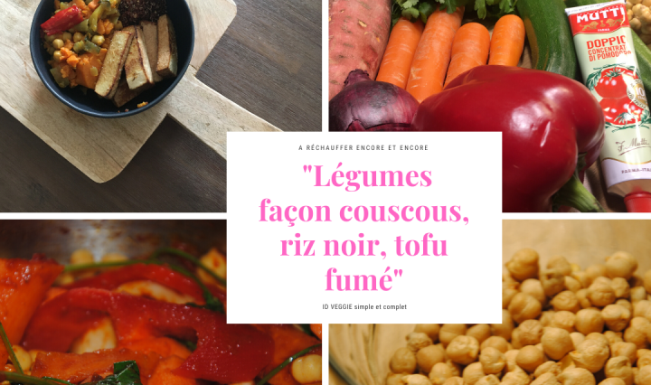 Quelques légumes, du concentré de tomates, du raz el hanout (épices pour couscous) et c’est parti pour une marmite de légumes façon couscous. Avec des pois chiches trempés pendant 12 heures, ou des prêts à l’emploi. La première étape est … Continuer de lire Légumes façon couscous, riz noir, tofu fumé